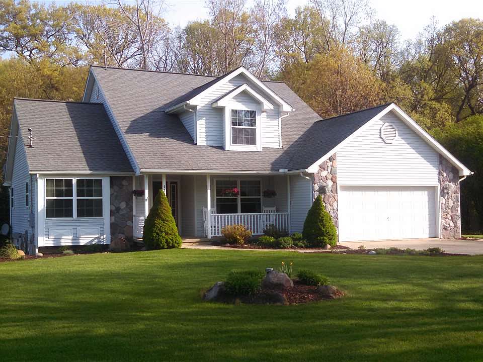Spectacular !!! Immaculate!! Custom!! Spacious!! Western Schools!! Pole Barn!!! Come on down as the price is right on this gorgeous family home on 1.3 lush and nicely landscaped acres of yard with 2 car attached garage AND separate 40x28 pole barn with 11 ft. overhead door for oversized goods and 8 ft. door w/opener. Exterior is amazing with no maintenance vinyl siding and fieldstone. The tour starts at the beautiful open front porch into the 2 story foyer where youll find a main floor Master suite suitable for KING SIZE furniture. Bath features garden tub, separate shower, dual sinks. The living area features 2 story vaulted ceiling, amazing natural light in the wall of windows overlooking the tree-lined backyard. 2 sided fireplace, open-concept kitchen, dining, living, bonus formal dining or den. Nicely appointed kitchen with breakfast bar, slider to deck. Upstairs 2 more very large bedrooms with tons of storage and another full bath. Basement is roomy, dry and ready to fin