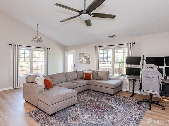 The heart of the home is the spacious kitchen with plenty of cabinet space, large pantry, open bar seating, newer stainless-steel appliances and flows seamlessly into the great room and dining area with new laminate flooring — ideal for entertaining. The large primary suite includes a walk-in closet and fully updated bathroom, while the second bedroom and fully updated bathroom provide comfortable guest or family space. A standout feature of this home is the bonus room the sellers added in garage — currently used as an office — complete with heating and air conditioning. Even with the bonus room, there’s still plenty of space for a car, bikes, and tools. Enjoy the lovely outdoor fenced space with the professionally installed epoxy-finished patio and raised garden bed. Located in a quiet neighborhood near parks, shopping, dining; this home combines suburban charm with unbeatable convenience.