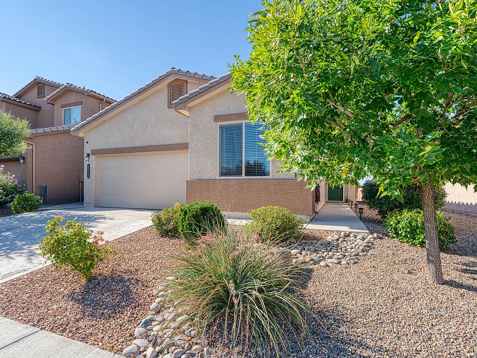 Owned Solar, Refrigerated Air and Tankless Water Heater! Light, bright and open floor plan. 3 Bedrooms plus an office. Ceiling Fans in all the Bedrooms. Open Kitchen with Stainless Steel Frigidaire appliances(Built-in Microwave, Gas Range and Dishwasher), crystal stone backsplash, under cabinet lights and center island. Low maintenance semi-private backyard with mountain views, sunscreen for shade/privacy and gas hook up for BBQ. Finished garage great for cars, projects and storage. Walk to the Trails Dog Park, Soccer park and Baseball park. Much more!