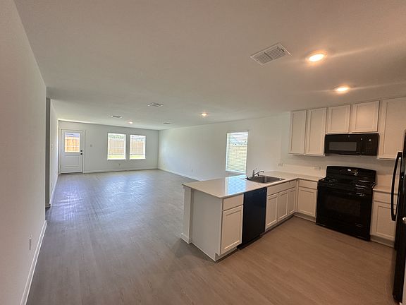 Inside, you'll love the thoughtfully designed open-concept floor plan, highlighted by sleek vinyl flooring in the main living areas and plush carpet in the bedrooms for comfort. The kitchen is a true centerpiece, boasting elegant quartz countertops, rich cabinetry, and durable black appliancesall designed to make cooking and entertaining a breeze.