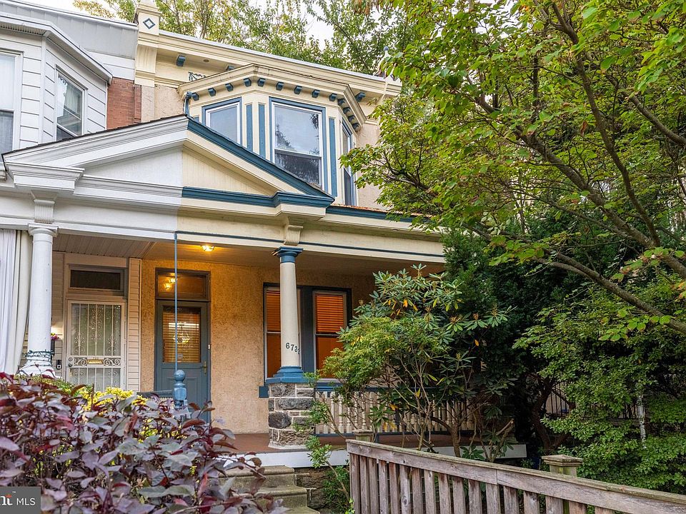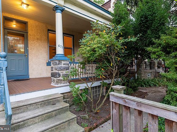 Welcome to 6733 N. 8th Street, a twin home brimming with character and charm, perfectly nestled in the treelined, picturesque community of East Oak Lane in Philadelphia. The fenced front yard, filled with perennials, offers privacy as you are welcomed onto a covered porch with TimberTech flooring. As you step inside the spacious living room, two front windows fill the space with natural light and highlight the unique floating staircase, soaring ceilings and ceiling Fan. The open concept layout leads to a formal dining area complete with decorative mantle, three windows, and a stained glass light fixture, creating the perfect setting for intimate gatherings and festive celebrations. Original oak hardwood floors add timeless beauty and enduring appeal. The large eat-in kitchen features a unique arched shelving nook, gas range, stainless steel refrigerator, microwave, new garbage disposal (June 2025), and additional outlets for your many appliances (June 2025). The room connects seamlessly to an updated pantry, convenient powder room, and laundry area. The rear door leads to a brick-paved, covered, screened-in back porch with ceiling fan, allowing views of an additional perennial-filled, fenced-in backyard—an ideal retreat for quiet mornings, evenings or outdoor entertainment. The second-level’s primary rear bedroom is a serene haven with three windows, free-standing cedar closet, hope chest, two bureaus, and ceiling fan for year round convenience and comfort. The middle-bedroom connects to the primary and has a generous closet, two windows and ceiling fan. The third, front bedroom (office, media room or creative studio) has 3 windows, a ceiling fan, and two closets. An updated full bath features a tub/shower combination with seat, linen storage, and high windows. The unfinished basement offers excellent storage or refinishing potential and is equipped with glass block windows, a gas hot air furnace/central air unit with humidifier, a gas hot water (domestic) heater, and newer PVC plumbing pipes. Throughout the home, newer blinds and shades add a designer touch. New roofs (February 2025) on house, front porch and bays. As an estate property, it is being sold in AS-IS condition, offering buyers the opportunity to make it their own. Located in a vibrant, walkable neighborhood with a friendly community feel, 6733 N. 8th Street is conveniently accessible to shopping; public rail transportation to Center City Philadelphia is a 10-minute walk away.