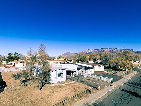 Fabulous home located in NE heights of Albuquerque on a Large fenced in lot. Close to shopping and restaurants. Multiple covered outdoor patios, covered carport plus covered RV storage. 19' x12' Detached workshop with electric plus storage building. New roof with transferable warranty. New mini split heating and cooling in flex room (3rd bedroom or 2nd living space). Kitchen features gas range, range hood, dishwasher, refrigerator, pantry and breakfast bar. Spacious owners suite with 3/4 bathroom and separate covered patio. Ceiling fans in living, kitchen and owners suite. Deactivated title, structural foundation inspection completed.