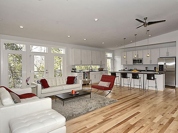 Open Sunday, July 26th Noon-3PM.Contemporary *Unique* Lakefront ! This home is move-in-ready and value-priced. Pre-inspected and resale package available to contract buyers. Resort-style amenities including two private beaches, boat launch, trails, basketball, tennis and 3 outdoor pools. This stunning Six Years Young property boasts an open floor plan ideal for today's homeowner! A stately entrance welcomes you home, complemented by a brick paver-patio under the industrial parking structure at grade. If you like to entertain, the great room begs to have a social distancing gathering of 9 or less of course or an intimate family dining experience. The vaulted ceilings reach a height of 12 feet , light hardwood floors on the entire main level and stylish stairs evoke a modern vacation home vibe. Timeless matte black granite counters adorn the grand island, contrasting the sleek white, soft-close cabinets with plenty of storage. A special transom window over the deep, stainless sink provides a picture frame view of the treetops down to the water while clearing the dishes. Stainless appliances, crystal pendant lights, and recessed lights overhead round out YOUR chef's kitchen. Two main level bedrooms, both en-suite; though the Master bath is something to behold. Designer free-standing tub, pebble stone-shower stall with barn-style frameless shower door, countertop height, dual vanities, and large linen closet. Dock permitted. Parking at street level, sleek, black, steel staircase leads you onto this special, low maintenance lot. The fun doesn't stop out front; wall of glass lakefront leads to 2-levels of composite decks. Why wait to build, this home can be yours in a matter of weeks!