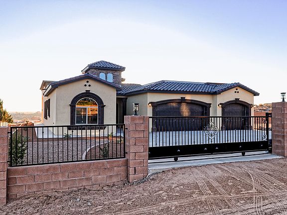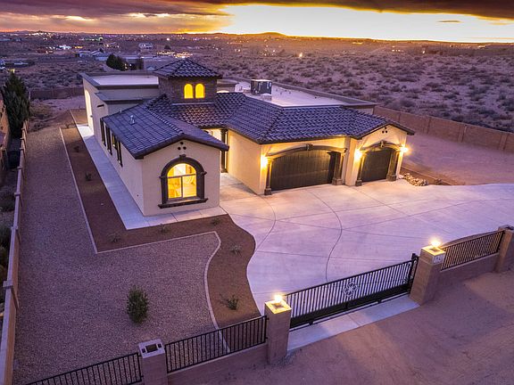 Absolutely Stunning Home! Luxurious New Built Custom Home in Rio Rancho Estates on .75 Acre Large View Lot, Surrounded by Block Wall Fencing with Remote Gate for Ultimate Privacy and Tranquility. Enter through the Custom Cantera Double Door, Cascading on the Italian Marble Flooring, leading to the Massive Great Room W/ Gas Fireplace, Dining Area & Four Panel Arcadia Door Over-looking the City Views & Night Lights & Sunsets, Gourmet Kitchen is enriched by Quartz Counter Tops, Commercial Stainless Steel Stove & Appliances, Dark Wood Cabinetry, Crown Moulding, Master Suite has Large Walk in Shower, His & Her Cabinets, 12x12 Classy Closet, Step into the Sprawling Entertaining Backyard W/Large Covered Patio, RV Gate, 3 Car Oversized, finished Garage, Spectacular Views.