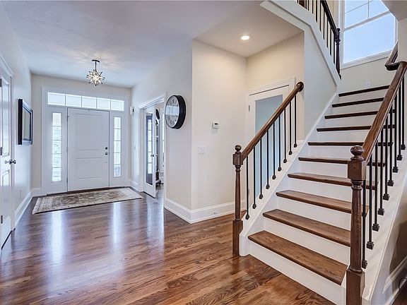Welcome to this beautifully maintained home, built in 2015, nestled in a quiet private cul-de-sac with local traffic only. With 9' ceilings and original refinished hardwood floors in 2025 throughout the first floor, this spacious home offers both elegance and comfort. The main floor features an inviting first-floor mudroom with laundry, a bright living room with one of two gas fireplaces as well as a sitting room which could be used as a first floor office if desired, and a well-appointed kitchen showcasing high-end Jenn Air stainless steel appliances and dovetailed KraftMaid cabinetry. All interior walls repainted in 2025. The walk-in pantry provides ample storage, while the open-concept design seamlessly connects to the dining area, perfect for family gatherings. Upstairs, you'll find four generously sized bedrooms, including the luxurious primary bedroom with an ensuite bath and a walk-in closet. The second-floor bonus room offers the potential for a fifth bedroom, or playroom, offering flexible living space to suit your needs. Step outside to your stunning 12x20' composite deck with scenic views, ideal for outdoor entertaining or relaxing. The large, level two-tiered backyard provides the perfect setting for barbecues, gardening, or enjoying the outdoors with family and friends. The walkout basement presents additional opportunities for living space, whether it be a home gym, media room, or play area. The garage is immaculate, featuring an insulated racedek finished floor and steel paneled walls and ceiling while the home boasts all-new second floor carpeting installed in 2025 and Anderson windows throughout. Don't miss the chance to make this exceptional property your new home! Square footage includes the 220 SF in second floor bonus room. Delayed negotiations until March 4, 2025 at 11 am.