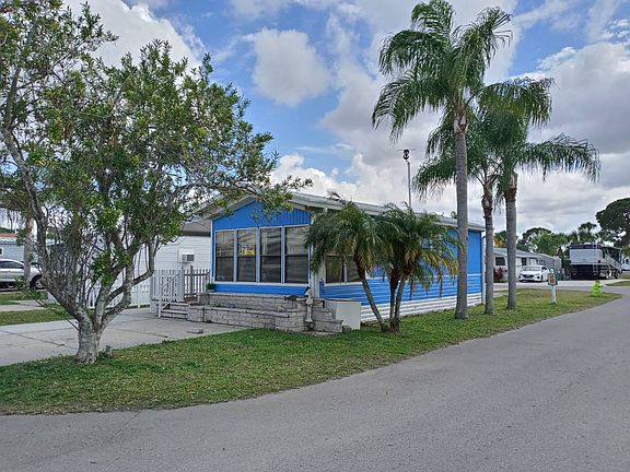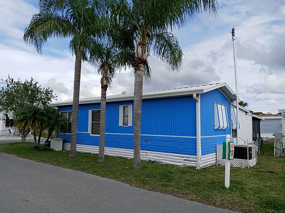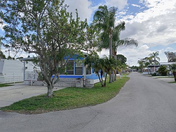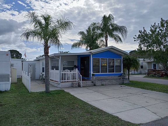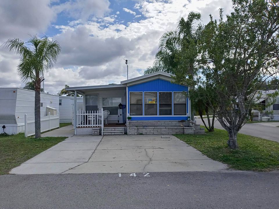 Come see this impressive 1 bedroom / 1 bathroom / 2 car driveway corner lot home with an open kitchen plan and cathedral ceilings throughout the home! The natural light this home gets is beautiful but perfectly located in the park and surrounded by palm trees where inside the home is the perfect temperature for comfortability! Another worry off of your plate is the roof, The roof was replaced in 2018 and resealed in 2020. Hot water heater was replaced in 2020. Outside of this home was repainted in 2020. Central AC unit also was maintenance in 2020 and in working condition. As you can see in the photos, plenty of storage in the home, as well as an outside shed that houses your dryer and the Florida room was converted into an enclosed room where you have a guest stay, craft room or a man cave! The space is ready to have your creative twist on it! Towards the rear of the enclosed room, is another area for storage and it houses your washer. Appliances that come with the home is a oven/stove combo along with 2 propane tanks, washer & dryer, the fridge/freezer and microwave. Home also has a clothes line to enjoy, and who doesn't love options?! If you are looking to buy a mobile home that is in great condition and rent it out, you can do that as well with this perfect home! Home does come partially furnished personal items do not convey! Park is 80/20 age restricted. Allows 2 pets with a 35lb weight limit per pet. lot rent is $541 for full time residents. $531 for snow birds. Lot rent includes your water, trash, sewage and lawn maintenance. You are only minutes away from water front dining, shopping, Wal-Mart, Target, Publix, convenient stores but perfectly tucked away at the same time!! Why are you still reading this? CALL NOW! *** Sales Price Does Not Include Tax(s), Tag and Title Fees etc.*** ***All new residents must pass criminal and credit background checks and have a verified income of at least 2-3 times the lot rent. *** **Occupancy only after park approval, having signed the park lease agreement and payment for lot rent is received by the management. Then keys will be released to buyer(s). Title(s) and registration(s) will be delivered on or before 60 days from the above requirements, other contractual conditions may apply. ** "All listing information is deemed reliable but not guaranteed and should be independently verified through personal inspection by appropriate professionals. our company cannot guarantee or warrant the accuracy of this information or condition of this property. The buyer assumes full responsibility for obtaining all current rates of lot rent, fees, and pass-on costs. Additionally, the buyer is responsible for obtaining all rules, regulations, pet policies, etc., associated with the mobile home park community from the park manager. Our company is not responsible for quoting of said fees or policies." This mobile home is being sold in AS-IS Condition Cash Only Absolutely NO Financing.