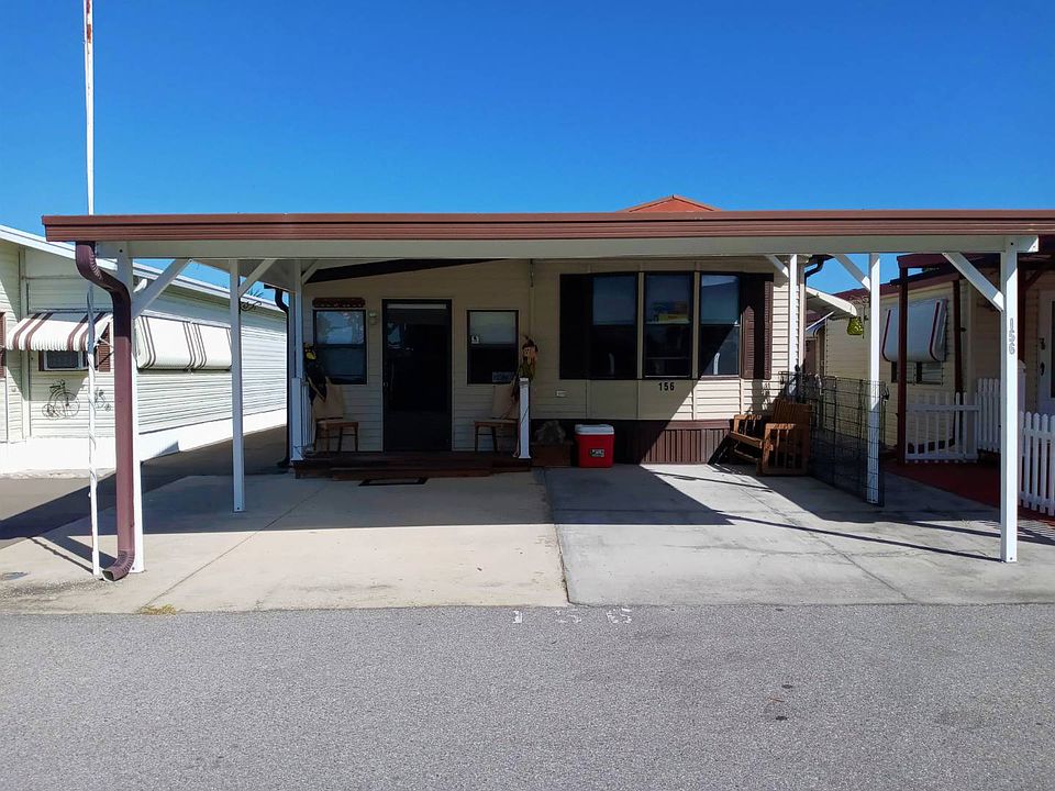 This home is the PERFECT set up for your everyday beach and or pool goer! There is a door to the left of this home that leads to the bathroom so no more tracking sand or wet feet through the house just to clean up later! And if it doesn't get more convenient than that, than I would be lying to you! No more hanging your wet clothes and towels outside, waiting for them to dry, just to forget about them later! That back door that leads to the bathroom .. ALSO has the washer and dryer in it! The home is a 2 bedroom / 2 bathroom with a 2 car carport! Your golf cart, motorcycle AND your day to day car will all fit under the carport together!! This smoke free home has had kitchen updates in the last 2 years. The home has cathedral ceilings throughout with 2 ceiling fans in total. The current owner had converted the front end of the Florida room to a guest bedroom but that space has endless possibilities! There is also more storage space than I bet you wouldn't know what to do with! You will also enjoy the fact that the home has no back yard neighbors! Don't miss out on this adorable renovated home! The park allows 2 pets, under the 30lb weight limit. This park is very community orientated! *** Sales Price Does Not Include Tax(s), Tag and Title Fees etc.*** ***All new residents must pass criminal and credit background checks and have a verified income of at least 2-3 times the lot rent. *** **Occupancy only after park approval, having signed the park lease agreement and payment for lot rent is received by the management. Then keys will be released to buyer(s). Title(s) and registration(s) will be delivered on or before 60 days from the above requirements, other contractual conditions may apply. ** "All listing information is deemed reliable but not guaranteed and should be independently verified through personal inspection by appropriate professionals. our company cannot guarantee or warrant the accuracy of this information or condition of this property. The buyer assumes full responsibility for obtaining all current rates of lot rent, fees, and pass-on costs. Additionally, the buyer is responsible for obtaining all rules, regulations, pet policies, etc., associated with the mobile home park community from the park manager. Our company is not responsible for quoting of said fees or policies." This mobile home is being sold in AS-IS Condition Cash Only Absolutely NO Financing