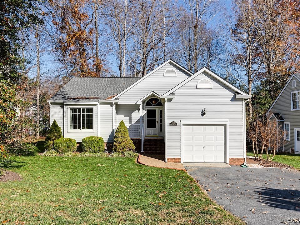 Welcome to 6735 Manor Gate Dr, nestled on a cul-de-sac, in the award-winning community of Woodlake. It boasts 3 BR & 2 Full BA, all in the comfort of a SINGLE LEVEL HOME! As you step inside, you're greeted by an inviting foyer with hardwood floors that lead you to the open concept Kitchen & Living Room. Absorb all the natural light that flows through the home, thanks to large windows & vaulted ceilings. Get comfortable by the gas fireplace or enjoy your morning coffee in the eat-in area. Retreat to the Primary Suite, featuring an ensuite bath that includes a tub/shower combo & a walk-in closet. 2 BRs & a second full bath provide comfort & convenience for family members or guests. Other highlights include a back deck to enjoy the outdoors & a single-car garage. This home has been well-maintained & loved by its original owner, who has provided many updates to the home, including new roof, gutters, most windows, & more! Conveniently located to dining, shopping, & entertainment options in Midlothian, or take advantage of the peaceful ambiance of the community. Walking distance to the community clubhouse, marina, & parks. Only a short drive to 288 for easy commuting.