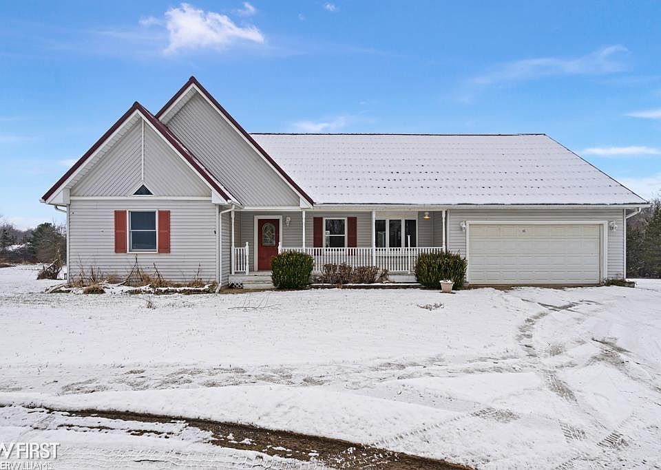 A captivating custom-built ranch nestled on 10 acres of scenic beauty. This charming home boasts 3 bedrooms and 2.5 baths, offering a perfect blend of comfort and elegance. The spacious interior is complemented by a thoughtfully designed floor plan, while the unfinished walk-out basement provides endless possibilities for customization. Embrace the tranquility of nature with a property that features a picturesque pond and partially wooded areas.