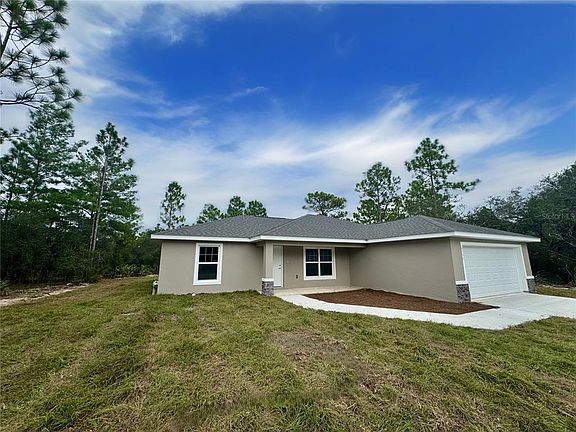 One or more photo(s) has been virtually staged. MOVE IN READY!! Beautiful new construction home on big, private lot! 3 bedroom, 2 bath split floorpan with high cathedral ceilings. Luxury Plank Vinyl flooring throughout all living and common areas, tile in bathrooms, and carpet in the bedrooms. Open floor plan with dining area and eat-in kitchen, all done in neutral, pleasing colors. Inside laundry with W & D hook-ups. Walk-in closet + regular size closet in Master bedroom. Stainless steel appliance package in the kitchen. Cabinets are white shaker-style with light luxury granite countertops. Stacked stone on the exterior entrance. Please see attached documents from Builder (Builders Contract Addendum & Warranty) Actual photos attached plus virtually staged model home photos for reference. Citrus Springs is a beautiful community with paved roads, access to trail heads, natural springs and river access, and located centrally to businesses, restaurants, and medical facilities. ***Inquire about our preferred lender deals! Builder offering to contribute to buyer’s closing costs or help with rate buy downs! We can be flexible to help our buyers get into a beautiful home! ***