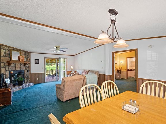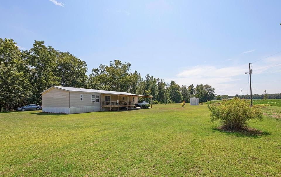 Well maintained 68 x 28 mobile home on 4+/- acres. Open floor plan with lots of cabinets and island bar in the kitchen, appliances to include range & hood, dishwasher, refrigerator, electric water heater, split bedroom plan, nice size laundry, fireplace in living room, huge master bedroom with a sitting area and large master bath. New roof 2019, , covered front porch, large covered deck on back w/carport,