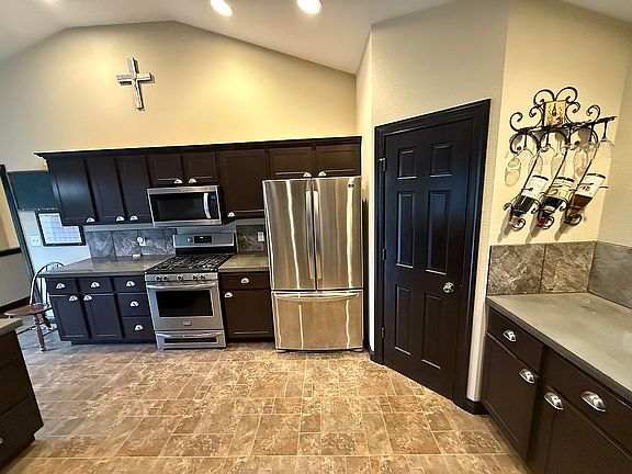 Fully sprinkled yardOver sized garageTiled wallsCustom countertopsTiled walk in showerWalk in pantryLaminate flooring