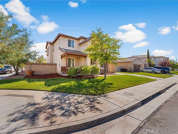 Welcome to this stunning updated two-story home nestled in an exclusive, newer-built community offering the perfect blend of comfort, sophistication, and convenience. Boasting 4 spacious bedrooms, 3 bathrooms, and 2,867 sq ft of living space, this residence sits on a premium 8,225 sq ft corner lot, offering privacy, curb appeal, and room to grow. From the moment you step inside, you're greeted by gleaming new laminate flooring and soaring two-story ceilings in the foyer that create an immediate sense of grandeur and warmth. To the left, a formal dining room awaits, while a more casual living space sits to the right—perfect for versatile everyday living. Continue through the hallway to find a fully upgraded kitchen featuring modern finishes, abundant cabinetry, and a seamless flow into the formal living room, complete with a cozy fireplace and large sliding doors that lead to both the backyard and the side yard. Natural light pours in through oversized windows throughout the main level, while the double-height ceilings at the entry allow sunshine to cascade along the staircase, enhancing the home's bright and welcoming ambiance. Upstairs, the generously sized bedrooms provide ample space for rest and relaxation. The luxurious primary suite offers two walk-in closets, dual vanities, a walk-in shower, and a spa-like soaking tub—perfect for your private retreat. The backyard is low-maintenance and features a large paved area ideal for entertaining, dining, or play. A gated side yard provides added privacy and security. Just a short stroll away, the community amenities elevate your lifestyle with a resort-style pool, relaxing spa, and a clubhouse—perfect for creating family memories and weekend getaways without ever leaving home. Located just minutes from major grocery chains, popular restaurants, and local entertainment, and only 7 minutes to Pearblossom with easy access to the 14 Freeway, this home offers convenience for commuters and peace of mind for growing families. Don’t miss this rare opportunity to own a well-appointed home in one of the most desirable neighborhoods in Palmdale.