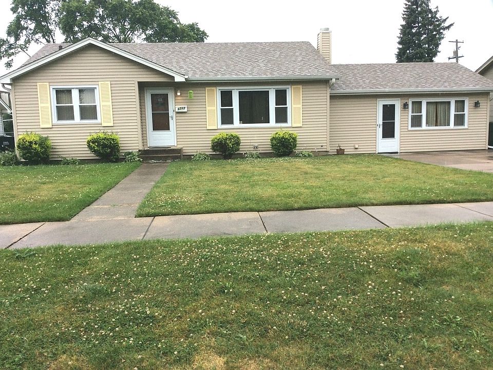 Nice quite street, nice home with very large fenced yard with shed- Home has hardwood floors through-out. Plus Roof 3yrs + oversize gutters, along with Air- Furnace -hot water heater + siding, up dated bath and All New windows all with-in 5yrs . Large Bedrooms and living room + eat in kitchen. With the 20x15 garage turned into a finished Family room for extra living space with heat and air. Short walk to parks, train- Library and schools all with in walking distance.Move in with peace of mind knowing almost all big ticket items R taken care of.