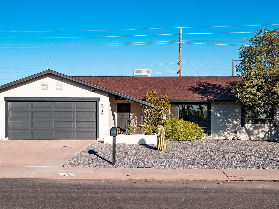 Beautifully remodeled 3-bedroom, 2-bath corner-lot home in desirable South Tempe! Enjoy peaceful sunset views from your low-maintenance backyard with a sparkling pool. Inside, the open-concept layout showcases a brand-new kitchen with new cabinets, quartz countertops, tile backsplash, stainless Samsung appliances, and a large quartz island perfect for entertaining. The split floor plan features a private primary suite with limestone tile in bathroom and a large bedroom. The guest bath is updated and new wood planked tile flooring runs throughout the property. It also has an Arizona room with its own mini-split that offers ideal space relaxation space.