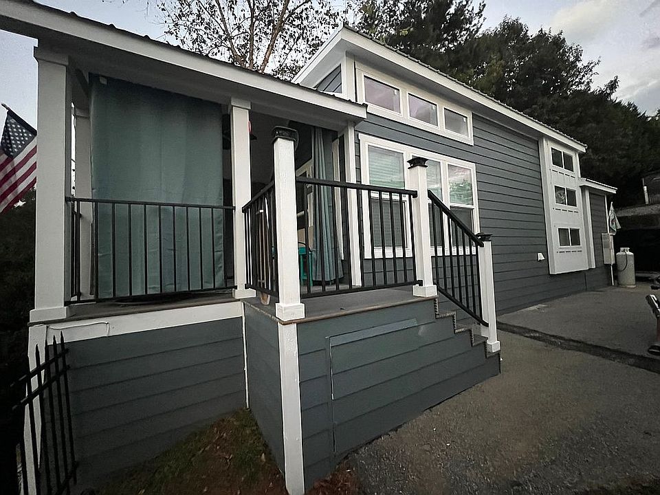 Unit 61, Tiny home. On the end with amazing view of lake norman. Original owner, no renters, Largest model, sleeps 9 comfortably with a Queen bed in the bedroom, bunk beds, loft with double and twin brand new mattress and pullout couch in the living room. Comes fully furnished. Home features front porch with Tv overlooking the lake, Open floor plan, high ceilings, Full size stainless Steele appliances including refrigerator, washer and dryer, dishwasher and Central Vacuum System, with three units including one in the loft. Lots of upgrades. Great community to live full time or rent out. These homes DO NOT include the land. Buyers will take over a 5 yr lease with 3 years left on it. Yard maintenance, Water and trash is included in the lease monthly fee. Only responsible for electric, propane and internet. LK Norman RV Resort Community features a gated entry, a pool, pickle ball court, workout facility, theater room, Laundry Facilities, Tiki Bar, Dog park, and Grilling area.