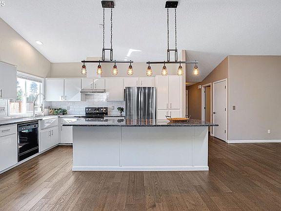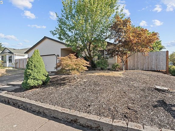Adorable single level on large corner lot in Arlington Park. Light and bright with vaulted ceiling and open floor plan. Island kitchen for entertaining and easy to maintain laminate floors. Granite counters, stainless appliances and farm sink. Great room features a woodburning fireplace and alcove for TV. The Primary bedroom off the entry with walk in closet and bath is convenient and separated from 2nd and 3rd BR's. Backyard is a gardeners dream with raised beds, fire pit, storage shed with rain barrels, possible RV parking on side yard and fully fenced. Double garage features large above storage room with pull down ladder. Bring your imagination and green thumb! [Home Energy Score = 8. HES Report at https://rpt.greenbuildingregistry.com/hes/OR10241195]
