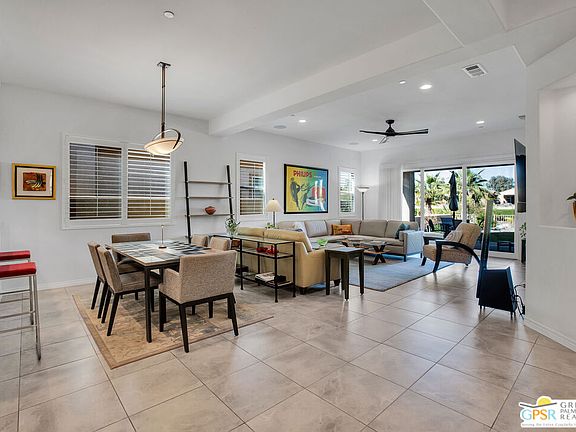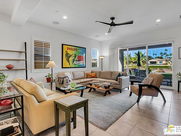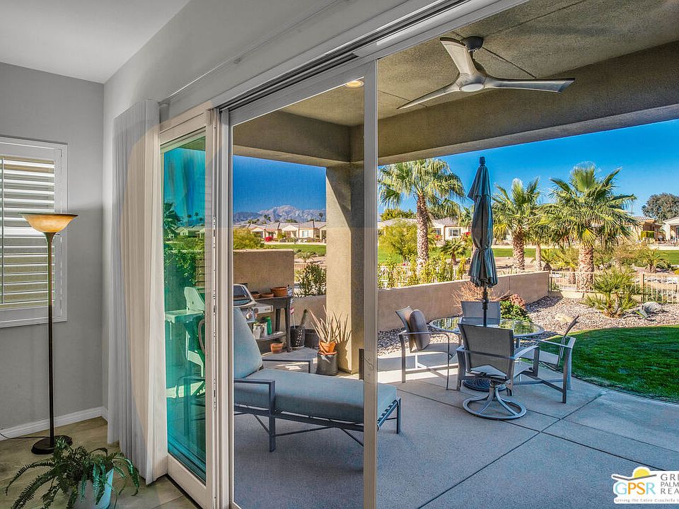 What a deal! This price is truly incredible if you can find a better home, in a better location, at a better price you should buy it! The seller is ready to move, and this home is priced to sell now. Welcome to the Arroyos at Desert Princess Country Club, one of the most desirable communities in the area. This stylish modern home offers a comfortable open floor plan that's perfect for everyday living and easy entertaining with great indoor/outdoor flow and smart bedroom separation for privacy. It's completely move-in ready, and you'll love saving on your electric bill thanks to the solar panels on the roof! You can't beat the location close to downtown Palm Springs, great restaurants, shopping, and the airport. And when you're home behind the gated entry, you'll enjoy a beautiful, well-kept community surrounded by mountain, golf course, and lake views. Desert Princess has it all: a 27-hole PGA Championship golf course, tennis and pickleball courts, bocce ball, a clubhouse and grill, fitness center, and four miles of walking paths. There's always something to do! Inside, you'll find an open chef's kitchen with upgraded appliances, granite counters, plenty of cabinet space, and a walk-in pantry all overlooking the dining and living areas that open right out to the patio and backyard. Built just six years ago, this Arroyos Villa 2 model includes all the modern features you'd expect plus lots of extras: upgraded lighting, ceiling fans, surround sound, energy-efficient HVAC with heat pump, window shutters, a Hot Springs spa, mature landscaping, and outdoor lighting. The HOA covers so much cable, internet, fitness center, and front and back yard maintenance and best of all, you own the land. This home really checks all the boxes for style, comfort, and value. Take a look at the photos, explore the virtual tour, and schedule your private showing today you'll be glad you did!