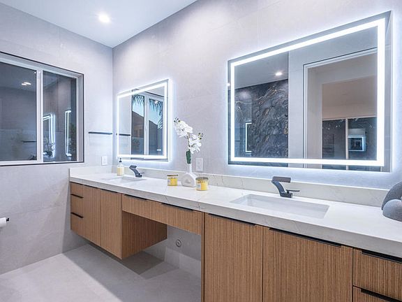 New construction, luxurious, upscale home featuring over 2,400 sq. ft. of livable space. 4 spacious bedrooms, of which 2 are primary retreats and 4 bathrooms. The home's modern architecture showcases an open floor plan. High ceilings, large windows and the open concept cultivate an abundance of natural light throughout the living areas. The kitchen features the latest technology in Samsung appliances (refrigerator, dishwasher, oven, microwave, hood and gas range), large center island with eat at counter, LED lighting throughout and a cozy fireplace in the living room. The seamless indoor / outdoor flow connects the inviting interior spaces to the serene, lush landscaping and outdoor areas. The exterior boasts an inviting spool for 20 people, an outdoor full sized bathroom with shower, BBQ area with sink and a mini fridge under a covered recreational space. The garage has an EV charger and storage room. The home is centrally located and within 5 minutes to Palm Springs. Close to the casino, the freeway, shopping, restaurants, and everything the desert has to offer. A brand new, highly upgraded home, with no HOA waiting for you! Make me an offer today!