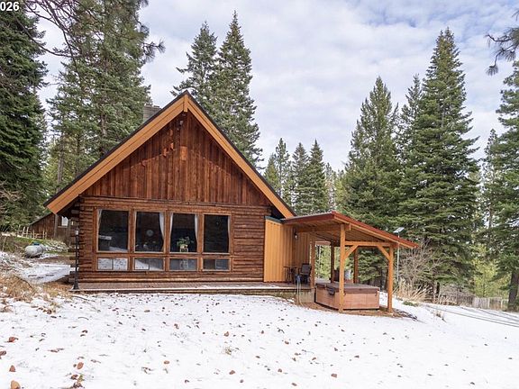 Whether you’re seeking privacy, tranquility, or a turn-key homestead, this exceptional property offers a rare blend of natural beauty, practical infrastructure, and comfortable living, nestled in the scenic beauty of Eastern Oregon, it sits on 10 timbered acres and offers privacy, functionality, and timeless charm. The beautifully maintained 2,016 sq ft log home features 3 bedrooms and 2 bathrooms, along with a turn-key equestrian setup, making it ideal for a variety of lifestyles. The home captures the warmth of rustic mountain living while incorporating thoughtful modern updates. High ceilings and large windows showcase serene forest views and fill the great room with natural light, creating an open, lodge-like atmosphere. A Blaze King Princess wood stove, in addition to central heating, keeps the home warm and inviting. The remodeled kitchen features custom cabinetry, beautiful countertops, and a cook island, making it both stylish and functional.The property’s outdoor amenities are thoughtfully designed to support a self-reliant lifestyle. A solid pole barn offers horse stalls, ample power, a working crane, and a hayloft, complemented by a fenced paddock and garden area. Water resources include a cold spring with cistern for irrigation and backup use, as well as a domestic well producing approximately 12 gallons per minute. A concrete septic tank installed in 2021 provides added reliability. Unwind in the hot tub, relax on the covered front porch, or take in the peaceful views of forested hillsides. Within walking-distance access to Mt. Emily Recreation Area, enjoy endless opportunities for hiking, running trails, horseback riding, and outdoor exploration. Experience this remarkable property for yourself, Schedule your viewing today!