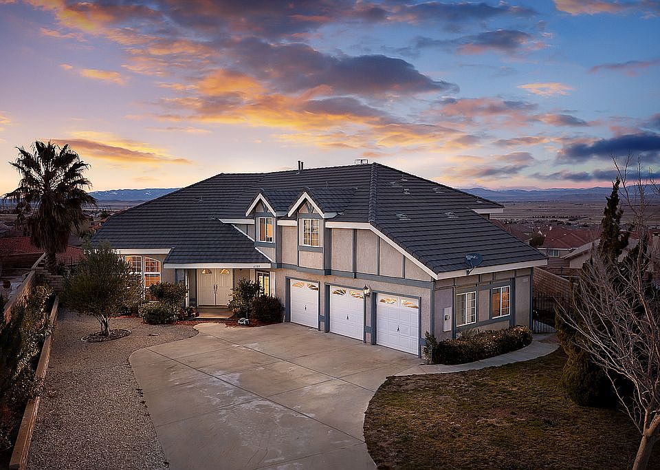 WATCH THE HD VIRTUAL TOUR BELOW . Beautiful West Palmdale Home w/ An Amazing View Located In The Quiet & Peaceful Community Of Godde Terrace. This 4 Bedroom Home Offers An Additional Den/ Office Downstairs That Can Be Used As A 5th Bedroom. Vaulted Ceilings & A Circular Stairs Greet You Upon Entry. The Inside Features A Formal Living & Formal Dining Room. The Roomy Family Room Has soaring 19 Ft Ceilings And Open Up To The Kitchen. The Kitchen Boast A Double Oven, Plenty Of Cabinetry, An Island & Tile Flooring. The Large Backyard Offers Spectacular City Views Of The Valley! The Long Private Driveway Comes Up To The 3 Car Garage. This Home Is Located In A Perfect Family Friendly Neighborhood And Is Zoned For The Best Schools!