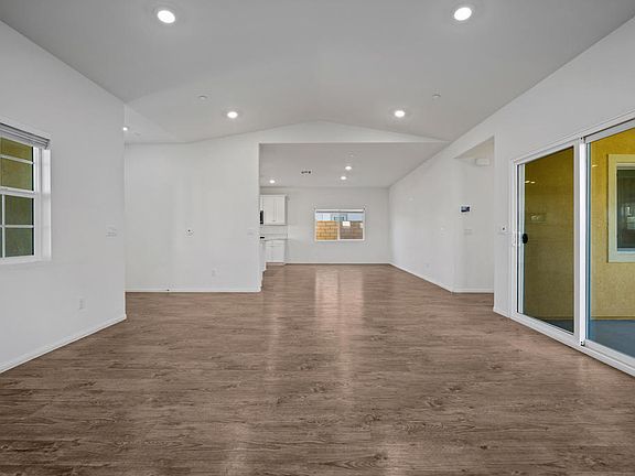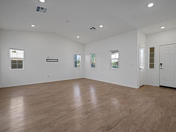 Located in the desirable community of Verano this 3 bedroom, 2 bathroom home offers 1,924 square feet of living space. As you approach the front door you are welcomed by a lovely porch. Upon entering you arrive in the quaint entry that leads into a generous family room with lots of windows, natural light and a dramatic high pitched ceiling. The beautiful wood grained vinyl floor runs throughout the home with the exception of carpet in the three bedrooms. The kitchen features stainless steel appliances, quartz countertops, a center island, walk in pantry and flows into the dining room. The white shaker cabinets are timeless & creates a fresh modern feel. A large indoor laundry room has built-in shelving providing ample storage. Everything about the Primary bedroom is spacious including the en-suite & the walk-in closet. The yard is low maintenance with a covered patio, artificial grass and desert landscape. This home has so much to offer and is truly move-in ready including window coverings, refrigerator, washer & dryer. Verano is a master planned community with low HOA dues of $180/month that includes clubhouse, pool, spa, pickleball courts, fitness center and much more.