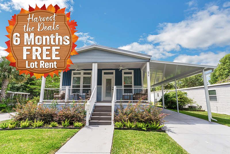 This beautiful home features a full, covered front deck, combining style and functionality. Quality-built wood cornices and 9' ceilings with transom windows fill each room with natural light, creating a bright, welcoming atmosphere. The kitchen is a true highlight, with spectacular soft-close cabinetry, 3/4"" fully adjustable shelves, and hidden cabinet door hinges for a sleek look.The master suite is a private retreat, complete with an attached glamour bathroom featuring a tile shower and freestanding tub, as well as a spacious walk-in closet. The open-concept living, dining, and kitchen areas are perfect for entertaining, with stainless steel appliances, a large farmhouse sink, and beautiful crescent edge countertops.One simply cannot beat the superior build quality and features of a Palm Harbor home.Come make this beauty your own in our active, resort-style 55+ community located in DeLand, FL. Enjoy tree-lined streets, large home sites, a lovely heated pool, and a newly remodeled clubhouse with plenty of activities like shuffleboard, corn-hole toss, checkers, cards, and more!