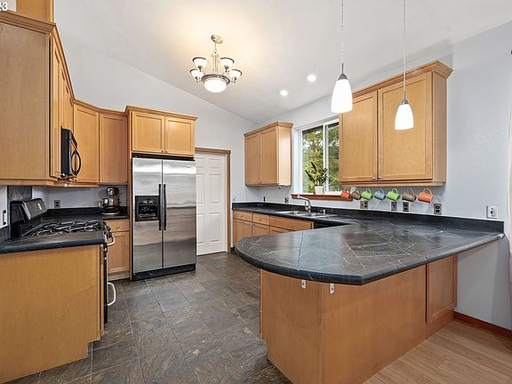 Thoughtfully curated with quality salvaged building materials, this one level home offers the conveniences of modern living, while stepping just outside the ordinary. With a function 3-4 butt kitchen complete with pull up seating. 3 large bedrooms, 2 bathrooms plus an office that is currently used as a sleeping room, a gas fireplace, sliding glass doors from both the living room and primary suite to a back concrete patio complete with fire pit. Follow the wooden bridge to the ultimate play shed with secret fenced in berry patch. This home has been used as a success short term rental and is currently occupied by extended stay guests. Short term rental permit does not transfer. Adjacent Property 676 NW 9th is also listed RMLS 23656921