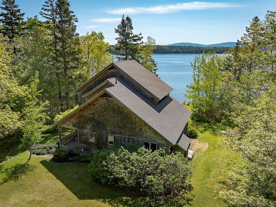 With spectacular views of Acadia's peaks over the conserved Alley Island, Spruce Point's vistas of Mount Desert Island are as pristine and unique as the house itself. Custom built in 1987 and lovingly owned by one family, this contemporary three-bedroom, year-round shorefront home has an open living area, screened-in porch, and an incredible kitchen with two sinks, two gas stoves, and great cook and counter space. A large bedroom is on the first floor, as well as a full bath and laundry room. Two more spacious bedrooms are upstairs, both with spectacular views and another full bath. Pretty perennial landscaping leaves more time to explore the ocean and beach, and kayaks and paddleboards are conveniently stored next to the stairs for easy, quick access. Listen to the loons or stargaze into the night sky while sitting next to the outdoor firepit. There is a whole house generator, new roof and a central vacuum system. Located down a private drive on 2.6 acres, Spruce Point is quiet and secluded yet minutes to everything including Acadia National Park, the airport, Bar Harbor, downtown Ellsworth, two hospitals, restaurants, and the soon to be home of Acadia's Gateway Center.