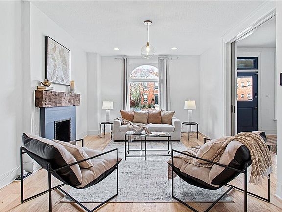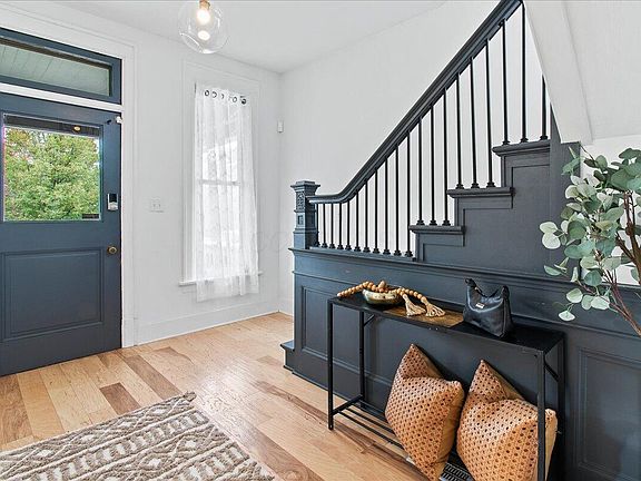 With an open floor plan, the first floor offers a natural flow and features a half bath along with original sliding pocket doors that highlight the home's historic charm. The updated kitchen showcases stainless steel appliances and an exposed brick wall providing additional counter space and storage. A mudroom, pantry, and laundry area are conveniently located just off the back entrance.The second floor offers three bedrooms and two full baths, including a primary suite with a spacious, spa-like bathroom. One bedroom is ideal for a home office or flex space. The third floor features vaulted ceilings, brand new carpet, and serves as a fourth bedroom with its own ensuite full bath perfect for guests or a private retreat.