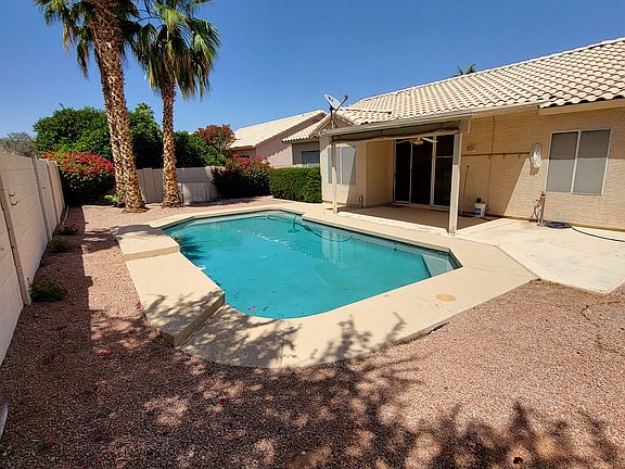 This beautiful home is located near Cooper and Warner in Gilbert. The house is in a quiet neighborhood with maintained lakes and walking trails. The spacious interior includes an open great room extending to the kitchen and 3 large bedrooms. The front and back yards are desert landscaped and the back yard has a covered patio and pool. This home comes with all appliances (Washer/Dryer/Fridge/Microwave, etc.). This home is close to shopping and restaurants in downtown Gilbert.