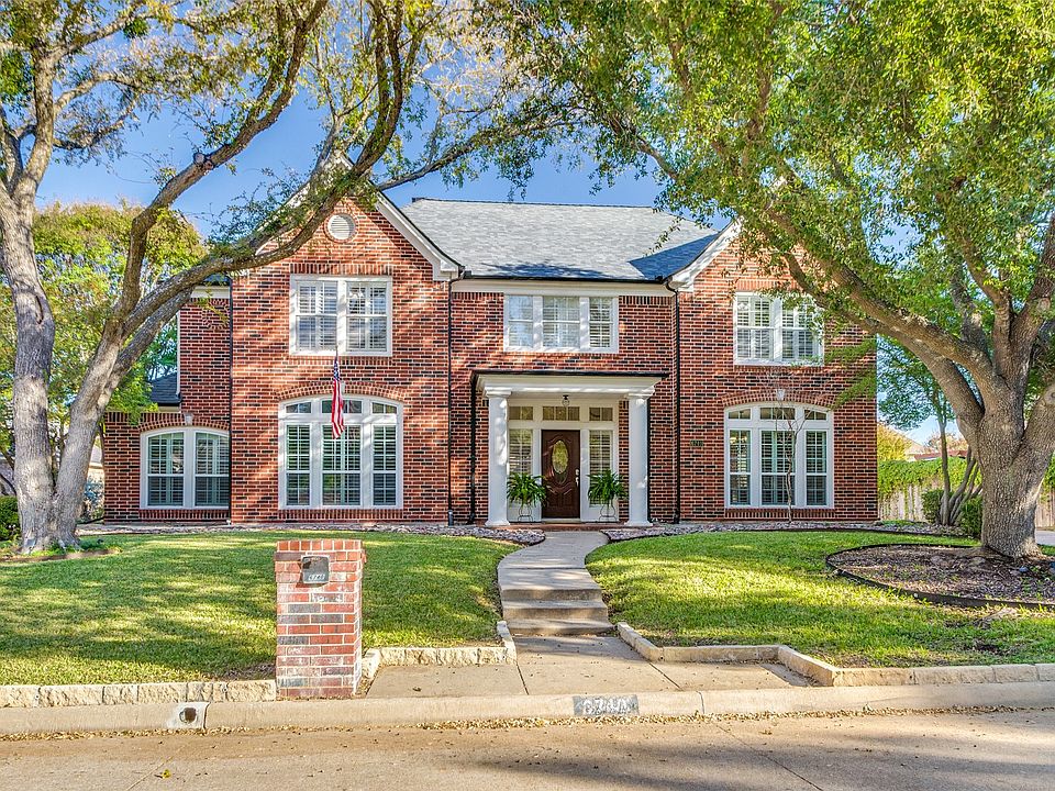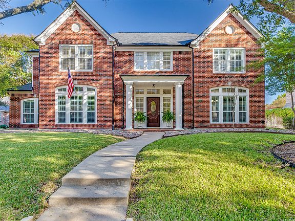 Beautiful classic traditional Perry home with approximately 4,002 square feet, 5 bedrooms, and 4 full baths. Lovely 2-story entry featuring hardwoods and plantation shutters throughout entire home. Two living areas, the primary suite with fireplace, a second bedroom, hall bathroom and the laundry room are down. Open gourmet kitchen flows into breakfast room and family room with gas fireplace. Three bedrooms, a third living area and 2 full baths are upstairs. Many upgrades include a roof with scotch guard superior shingles and 2 hot water heaters in 2023. Beautiful pergola and covered patio overlook the gorgeous pool. Voluntary HOA for Social Gatherings. Prestigious location one block from Oakmont Park with walking-biking trails and playground, near several private schools and within minutes to Chisholm Trail Tollway.