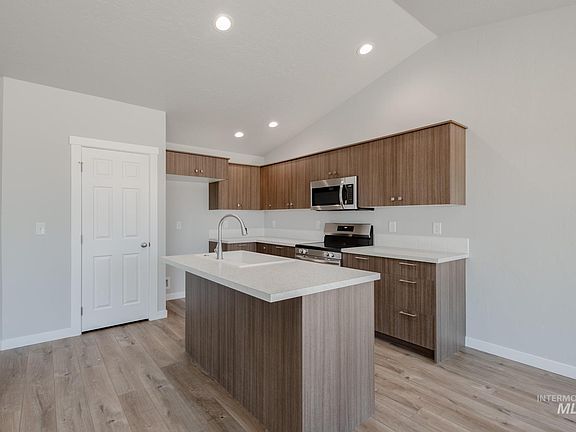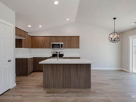 Feel enriched in your brand new home located in Meridian, Idaho! The Harlow 1364 is the quaint split bedroom you've been waiting for! Enter inside and be welcomed with 8' ceilings and an entryway that leads you to the heart of the home. The open concept living area & kitchen are at the rear of the home, so the hustle & bustle of the world can melt away. The well-appointed kitchen is equipped with a kitchen island and a spacious pantry. Easy access to the patio from the dining area makes enjoying the outdoors a breeze. Escape to the primary suite at the end of the day, where the en suite bath offers dual vanities and a walk-in closet provides plenty of storage. Two additional bedrooms are located at the front of the home, offering a peaceful separation from the primary suite for added privacy. Photos are of the actual home!
