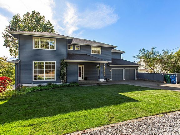 This spacious, 1992 built home, has a gracious, well laid out floor plan. The main floor boasts a large dining room, bigger living room, and a sumptuous family room just a step down from the well equipped kitchen. A half guest bath and separate laundry room complete this main level. Upstairs is a primary suite that includes a walk in closet, a double sink vanity, dressing table, separate shower, and a dreamy spa tub. Down the hall is a large office with built-ins, two large bedrooms and a full bath. The 2-level west facing deck is a perfect entertaining or relaxing space. Established raspberry bushes, newly sodded front yard, storage under the home, and a real two car garage. On a quiet street, close to Riverview Playfields, hiking trails,