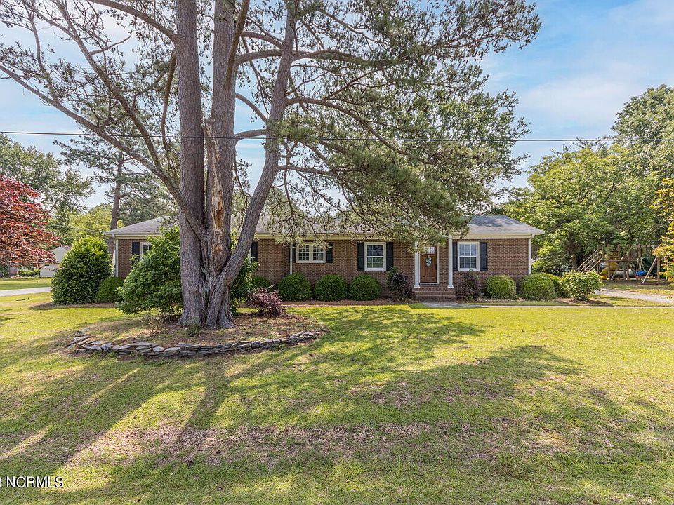 Hard to find brick ranch on .5+acre homesite with no HOA!! Country setting but still in city limits. Living room w/harwood floors & large window. Huge family room w/ hardwoods, ceiling fan & door to patio. Kitchen/dining room w/new electric range, stainless steel dishwasher & refrigerator, lots of cabinets & pantry for storage. Split bedroom floor plan. Primary suite has 2 closets, sitting room/office and private bathroom. 3 additional bedrooms w/hardwood floors share hall bath w/granite vanity & tub/shower. Large laundry room w/washer, dryer, sink & room for storage. Paver patio overlooking backyard w/workshop & 2 car carport. New vapor barrier & insulation in crawlspace. Easy commute to Raleigh & Wilson.