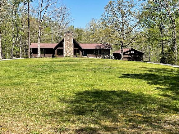 GLORIOUSLY PRIVATE SANCTUARY is what you will find as this rustic ranch sitting on 16.69 acres and has many updated features such as fresh paint, new flooring, bright kitchen with granite and stainless appliances. Floor to ceiling windows and huge rustic fire place in living room. Stairs take you to large multi purpose loft area. Main level master with large bath. Jack & Jill bath serves two additional bedrooms. Screened porch, deck as well as Garage/workshop/barn combo with garden area in rear. Room for horses and many animals. Above ground pool can convey or be removed.
