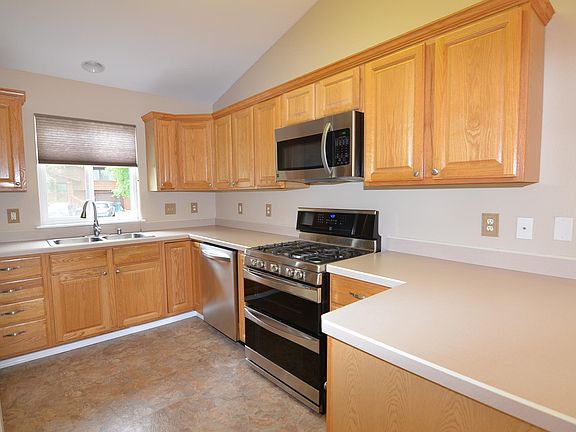 Feels like new. Great natural lighting, Laminate flooring, vaulted ceilings, cozy gas fireplace and fresh paint throughout. Kitchen with nice stainless appliances and large pantry. Master bedroom on main level w/2 additional bedrooms and familyroom downstairs. Garage is extra wide with room to add a work area. Extra paved driveway for RV or Toys.
