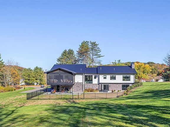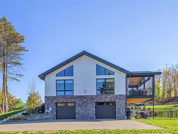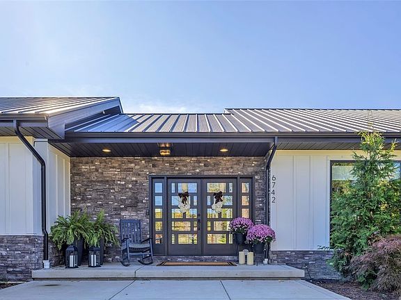 Nearly 2 acres in Cranberry host this custom-built sprawling ranch (builder’s personal home) with public utilities, fenced yard & stunning stone landscaping. Rare find with 2nd gravel drive for pole or 2nd building. Gorgeous stone & hardy home features covered porch & unique French dbl glass doors w/sidelights. Step into 2-story foyer showcasing 3-5 inch original wormy chestnut matte floors thruout. Breathtaking open dining, great & morning rms plus gourmet kitchen w/soaring ceilings, quartz counters, upscale lighting, Café appl, dbl ovens, contrasting island & breakfast bar. Morning rm leads to vaulted sunrm w/T&G ceiling & aux heat. Designer powder rm, laundry w/cabinetry. Vaulted primary suite w/quartz vanities, glass/ceramic shower, walk-in w/built-ins & makeup area. 2 add’l BRs w/fans. Open stairway w/iron rails to finished walk-out LL featuring full bar, bath w/urban tile shower, woodburner, patio & much more—must see!