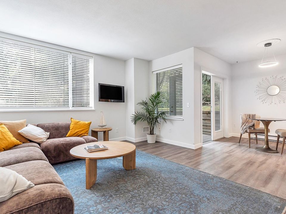 Spacious 1 bed, 1 bath ground-level home with 788 sq.ft backing onto a lush greenbelt and walking trails. Open-concept living/dining area and large bedroom. Includes secure underground parking. Prime location-steps to Edmonds SkyTrain, Taylor Park, trails, and neighbourhood shops. Perfect blend of nature and convenience. Open House Sat 2-4 pm