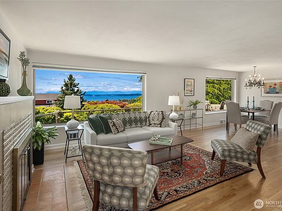 Gatewood Puget Sound view home! Enjoy the beautiful Sound and Mountain views with no wires! Great views from the living room and dining, kitchen, and expansive rear sunny deck. Lovingly maintained mature landscaping with peaceful park-like yard. Newly refinished oak hardwood floors on the main floor and brand new carpet on the lower level. New interior paint throughout. Two spacious bedrooms on the main floor and a third bedroom on the lower floor, along with a rec room and office. Wonderful and quiet Gatewood neighborhood. Just a few blocks to Morgan Junction with its restaurants, Starbucks, and Thriftway grocery store. This mid-century home is super convenient to all of West Seattle. Ask your agent for the new kitchen plan estimate!