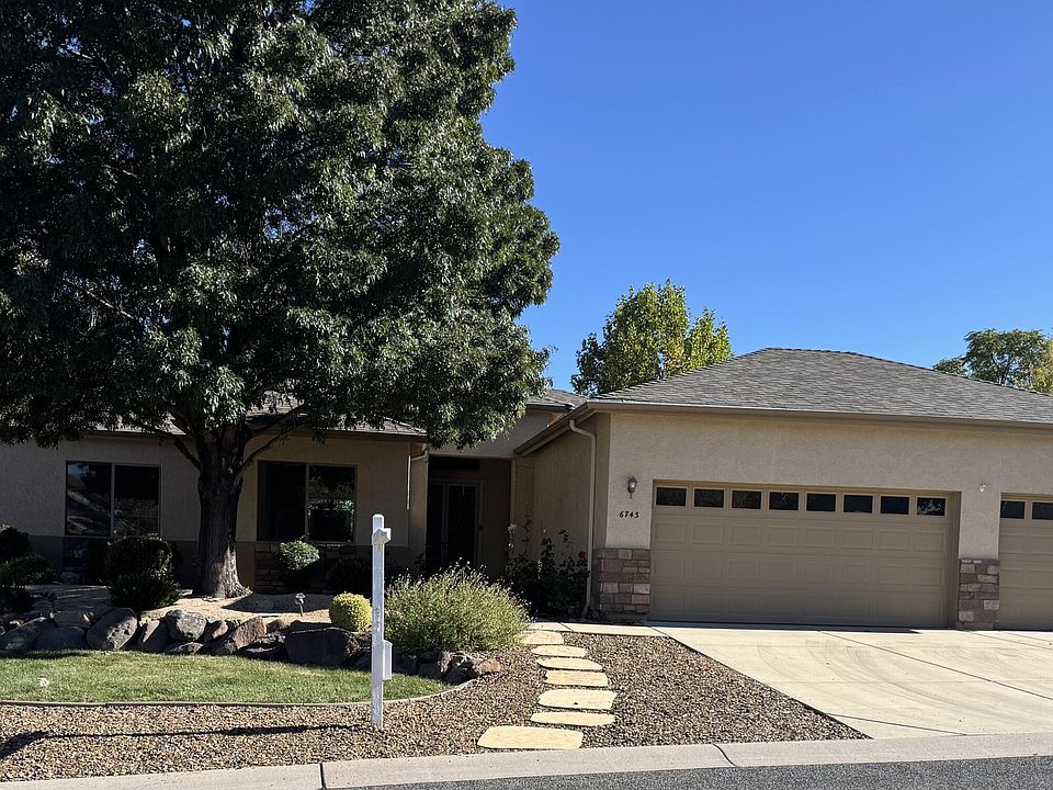 Clean and move-in ready Granville home with brand new interior paint and carpeting! Greet your visitors with lovely, mature landscaping and a custom security double-door at the covered entry. The 1,853 sq. ft. split floorplan is open concept and offers 3 bedrooms, 2 bathrooms, and excellent storage throughout. A corner gas fireplace and architectural niches in the great room are both functional and eye-catching. Plenty of mealtime seating options, with a spacious breakfast nook, eat-at counterspace, and a formal dining area. Cooks will especially appreciate the efficient layout of the kitchen, and a pantry and built-in desk area are handy highlights. Primary suite is spacious; the ensuite is an effortlessly shareable bathroom with its dual sinks, roomy walk-in closet, and private commode closet. Larger vehicles and hobbies are welcome in the oversized 3-car garage with built-ins to keep you organized. Your delightful backyard oasis stars a beautiful water feature with pond and grass lawn. The large, covered paver patio - with an extended area for additional seating - is the ideal spot for catching a breeze or entertaining guests. A custom shed keeps tools and toys neatly stored. Take advantage of Granville's unbeatable community amenities, included in a very reasonable HOA fee: multiple clubhouses with activities, pools, gyms, parks, trails, playgrounds, tennis & pickleball courts, a dog park, and more. Shopping, entertainment venues, restaurants, and medical facilities are just minutes away...plus, you'll have easy highway access to both Pioneer Parkway and AZ-69. The perfect Prescott Valley package!