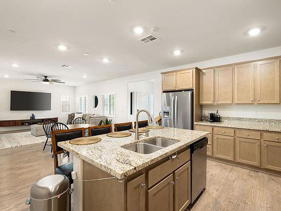 Welcome to your dream home in the heart of Cathedral City, California! This exquisite property offers the perfect blend of modern luxury, impeccable style, and endless possibilities. This home is a true gem with two bedrooms, two bathrooms, plus a den and a host of exceptional features.Built just two years ago, this residence showcases a contemporary design and upgraded interior with OWNED SOLAR. The attention to detail is evident throughout, from the sleek finishes to the carefully selected materials, creating an atmosphere of sophistication and comfort. The open floor plan seamlessly connects the living, dining, and kitchen areas, providing a spacious and inviting ambiance for both relaxation and entertainment. The kitchen is a culinary enthusiast's delight, featuring top-of-the-line appliances, custom cabinetry, and solid surface countertops.Beyond the interior, the low-maintenance landscape, gated park, clubhouse, community pool, and exercise facility add to this property's allure. Spend your days basking in the sun-drenched backyard, where tranquility and privacy reign supreme. The paved patio and lush greenery offer a serene retreat from the outside world.One of the exceptional highlights of this home is its flexibility. With the potential to upgrade from a two-bedroom to a three-bedroom layout, this property accommodates your evolving needs and desires. Whether you envision a home office, a guest suite, or a personal gym, the possibilities are endles