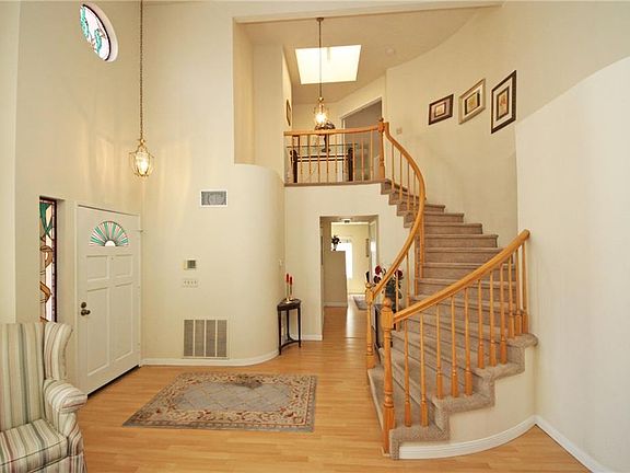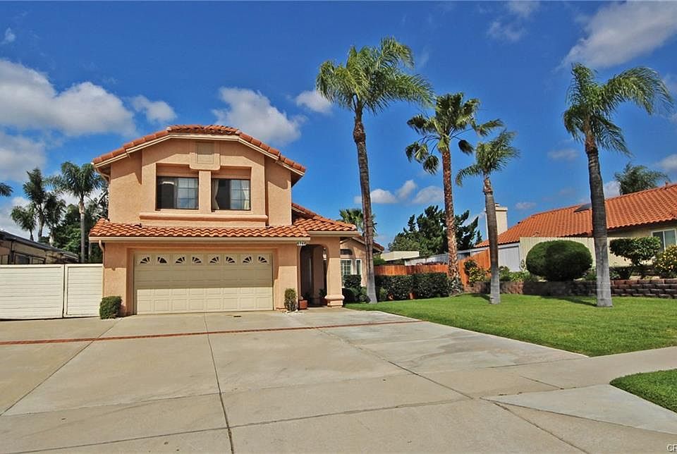 Contact KURT FREJLACH for more info at 909-815-7775. FORMER MODEL HOME! This gorgeous 4 bedroom home shows beautifully with nearly $100K in upgrades! Inviting curb appeal with an east-facing front door, manicured lawn, palm trees & spacious driveway. Soaring 2-story vaulted ceiling over the foyer, formal living room & formal dining room. Tastefully remodeled kitchen features granite counter tops, newer appliances, newer sink/hardware, newer paint, deep reach-in pantry and newer tile & laminate wood flooring. The kitchen opens to the breakfast area and spacious family room with a fireplace & media niche. Put your pool table here! Custom plantation shutters throughout the main level! Colorful stained glass style windows in the dining room and at the entryway. Main level laundry room has a window & storage space. Across the hall is a half bathroom for guests. Dramatic curved staircase under a skylight leads to all bedrooms and linen storage at the landing. Double doors open to the master suite under a vaulted ceiling. Through a sliding glass door, you have access to a covered deck with a wonderful mountain view. The master bathroom offers a large walk-in closet with mirrored doors, dual sinks, soaking tub with shower & privacy toilet door. The sunny backyard is perfect for BBQs with an in-ground spa, solid patio cover, raised flower bed, expansive lawn & mountain view! Paved gated side yard for storing smaller RVs. Take a good look at this exceptional property today!