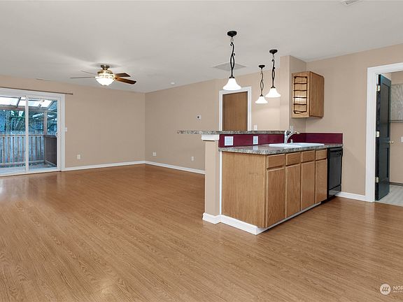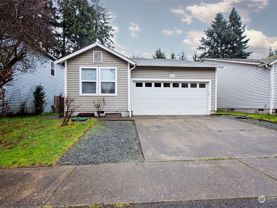 Single story 2 BR/2 bath home in Tumwater, conveniently located very close to schools, shopping, State offices. Primary suite features spacious bath and large walk-in closet. Split bedroom layout, 2nd bedroom is large as well, and positioned near hall/guest bath. Open great room floor plan, laminate/vinyl throughout. Fully fenced backyard & attached 2-car garage.