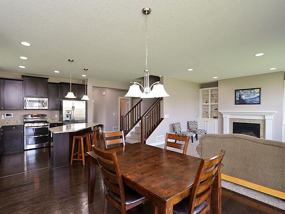 High demand Eastridge Woods home in Eastridge High school. Like new, '14 built, home features a large bonus room above garage with projector screen and surround sound. 4 beds on one level with vaulted master bedroom and 2 closets. Hardwood floors in kitchen/dining area with a flex room that could be a formal dining room/office/den. Walnut stained maple cabinets with granite counters and stainless steel appliances. Lower level has rough-in bath and room for another bedroom. Park across street!