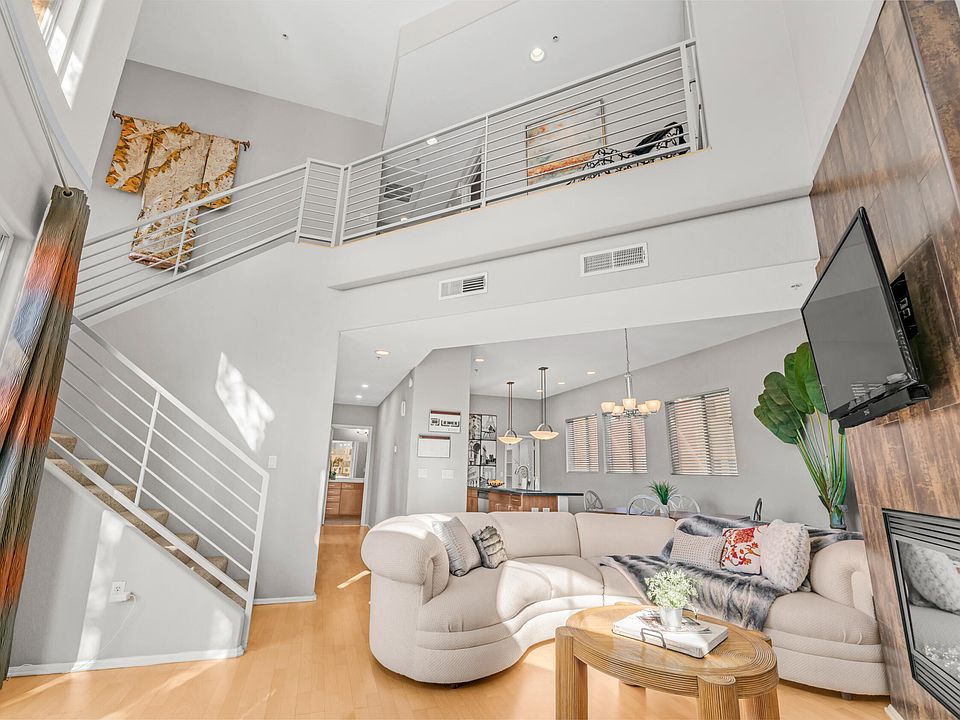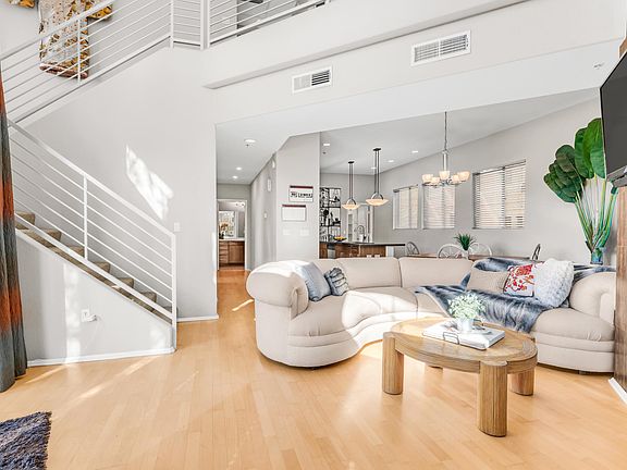 Exclusive 3-story PENTHOUSE Style corner unit—only 6 ever built! Soaring 20' windows fill the home with light. Spacious great room opens to loft above. Two master suites upstairs plus large main-floor bedroom with full bath. Contemporary kitchen with black granite, stainless appliances & 6'x5' pantry (ideal wine cellar). Wood floors throughout. Enjoy a 2-car garage with storage, covered patio & 2nd-floor balcony. Gated community with clubhouse, fitness center, 2 heated pools & spas. Walk to State Farm Stadium, Desert Diamond Arena, Westgate dining, shopping & nightlife! Pristine, upgraded & move-in ready! Also: New grabage disposal, New Water Heater, freshly painted closets.