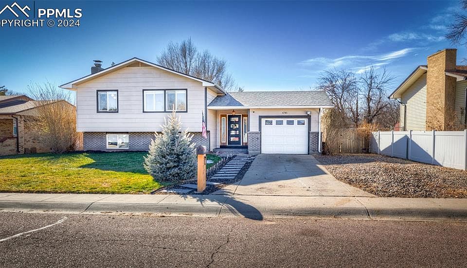 Updated, 5 bedroom, 3 bathroom bi-level home with gorgeous open floor plan. Great curb appeal with newly installed sod, an above-ground sprinkler system, large driveway with extra space for RV parking, fresh mulch & rock landscaping, and a stone pathway leading to a stylish custom mailbox! Inside, the spacious entryway welcomes you with access to both levels, the 1 car attached garage, and the fully fenced back yard. The upper level features a modern kitchen with gray cabinets with crown molding, butcher block countertops, a large center island with deep storage, and all matching stainless Whirlpool appliances. A custom coffee station with pull-out trash cans, a pantry closet with pull-out drawers, and built-in wine storage enhance the kitchen’s functionality. The dining area features updated lighting, while the family room has a stylish accent wall. The primary suite offers laminate floors, a ceiling fan, a custom closet inset, and an attached bath with a walk-in tiled shower, double vanity, updated lighting, and a window to vent. Two additional bedrooms have laminate floors and ceiling fans, and the shared bathroom includes a skylight, updated vanity, and a tiled tub/shower combo. The finished garden level basement includes a spacious family room with a stone-wall wood-burning fireplace. A bonus area with cabinets and counters serves as a potential craft or office space, while under-stair storage and a crawl space offer extra utility. Two good sized bedrooms on this level and a ¾ bath that features a tiled walk-in shower with river rock flooring, updated vanity, and built-in storage. The garage includes a built-in workbench, while the backyard features a tile-covered patio with a pergola and sunshade, a flagstone fire pit area, and turf in the backyard creating a perfect outdoor oasis. Other features include central AC system (2023), radon mitigation, a newer water heater (2022), and newly added solar panels. Perfect location with quick access to everything!