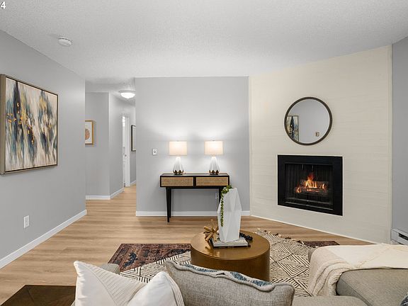 Charming, upper-level condo in an amazing location! This spacious unit with two bedrooms and two bathrooms creates an ease of living that is hard to find. Coupled with a beautiful living room with a cozy gas fireplace, in-unit laundry, covered balcony with storage, new vinyl flooring and paint throughout, this home is perfect for stress-free living. With ownership in this wonderful building, you have assigned parking, plenty of guest parking, swimming pool and community room. Location, location, location! Easy access to Washington Square mall, Garden Home Trader Joe's, Portland Golf Club, RedTail Golf Center, Tigard, Raleigh Hills, Fanno Creek, Multnomah Village, I5 and 217 highways.