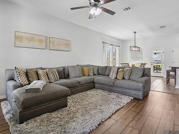 GORGEOUS 3 BR 2 BA WATERFRONT HOME WITH AN OPEN FLOOR PLAN. THIS HOME OFFERS GRANITE COUNTER TOPS IN THE KITCHEN AND BATHROOMS, INCLUDING UNDER MOUNTED SINKS. KITCHEN HAS ISLAND WITH COUNTER SEATING, 42" STAINED, BEECHWOOD CABINETS, STAINLESS STEEL GAS COOKTOP, MICROWAVE, DISHWASHER AND BREAKFAST/DINING AREA. FLOORING-LAMINATE, CERAMIC AND CARPETING. 9FT CEILINGS AND CEILING FANS THROUGHOUT HOME. MASTER BATH FEATURES LINEN CLOSET, DOUBLE VANITIES, LARGE WALK IN CLOSET, SEPARATE SHOWER, GARDEN TUB. BEAUTIFUL COVERED PATIO AREA OVERLOOKING PICTURESQUE VIEWS OF THE POND AND SUNSETS. CEILING FANS ON BACK PATIO. SEPARATE GAS DROP IN PATIO AREA. BACKYARD IS WOOD AND RAIL FENCED. THERE IS A 220 TRANSFER SWITCH-INLET FOR A GENARATOR. THIS HOME IS A MUST SEE AND WONT LAST LONG. BRUSLY SCHOOL DISTRICT! WALK TO YMCA AND OTHER NEIGHBORHOOD PONDS. CONVENIENT TO LOCAL RETAIL, COMMERCIAL BUSINESSES AND RESTAURANTS. CALL FOR YOUR SHOWING TODAY!!!