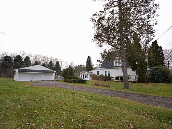 HOME IS OCCUPIED-APPMNTS ONLY..OWNER IN RESIDENCE. SOME REFURBISHMENT NEEDED -VERY FUNCTIONAL. 24 HR NOTICE FOR SHOWINGS-2WK MOVE OUT PLEASE - Century farmhouse with so much potential to offer at a great price on approximately 2 acres & almost 200 ft. of frontage. Sporting both side and front enclosed porches (rear is possible mud room). Spacious rooms include an Eat-in Kitchen, Formal Dining Room, Living Room & Family Room. Roof replace 7/17 on house except back porch and back family room. Electric Panel - 2015 & Central Air and furnace is 2008. 3 Car Garage has two bays with garage openers and one without - tons of room inside this garage - with new garage roof just put on Dec 2019 with a HUGE Deck attached. Extra building with a foundation NOT A POLE BUILDING 24x24 Outbuilding - needs some TLC But Sweat Equity abounds here! 2018 Prior Appraised county value 198K. Super convenient location. Two full bedrooms up and one bedroom on the main floor. Laundry in basement - but we think there was a dryer outlet in the utility room on main floor off family room there are water hookups but they are not currently active. SOOOOOOOOOOOOOOO much to offer - some hardwoods under carpets up stairs and in some rooms - buyer should verify if that is important to them. Lovely century home - foundation is super - system work is newer just do the cosmetics and have a great home - what a joy to bring this up to it's original beauty!!!! Public water per prior owner is across the street.